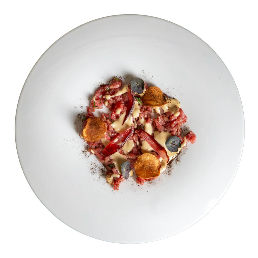 Carpaccio di manzo, cipolla rossa e maionese al lampone