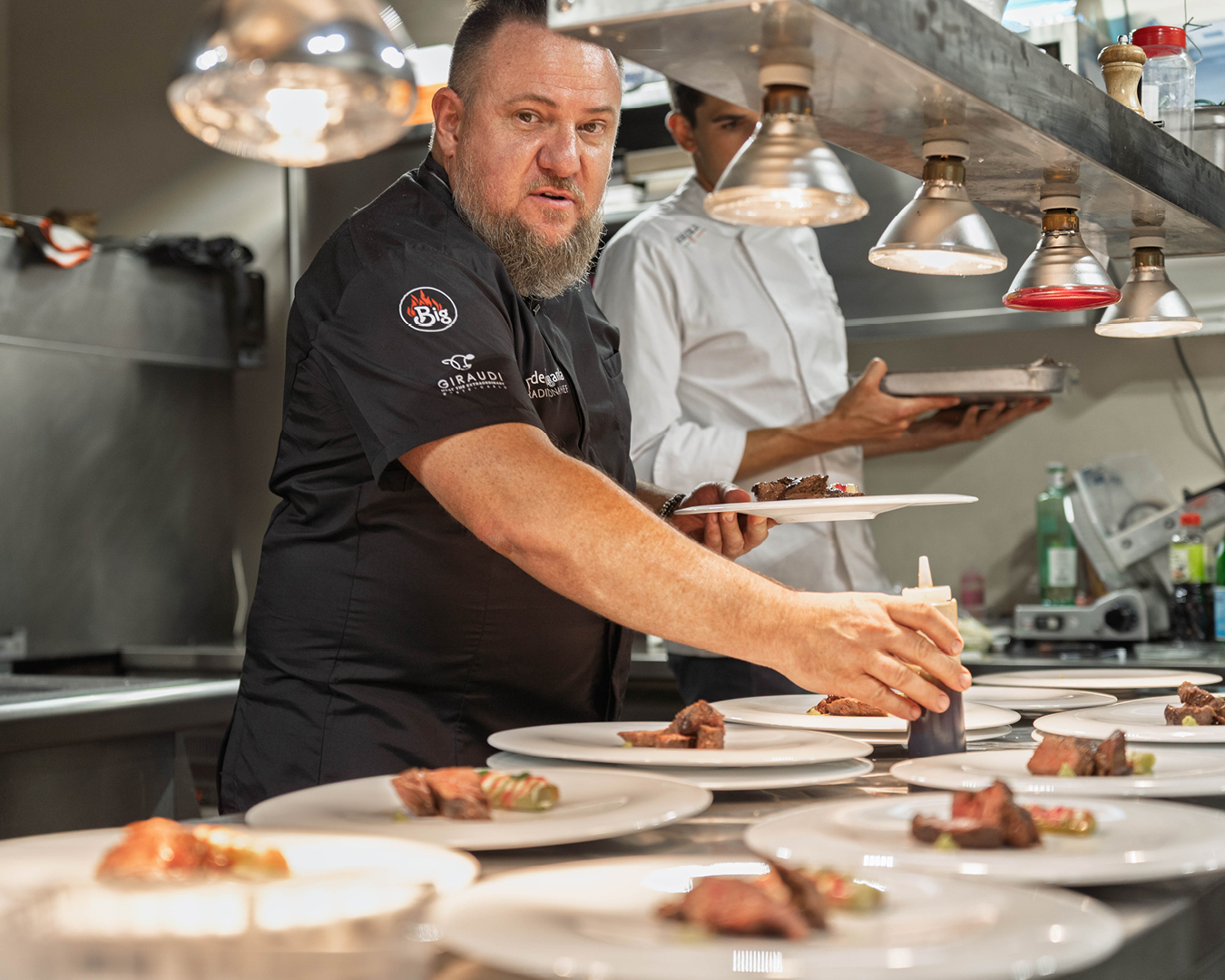 Davide “Mr. Big” Bigarella, Chef tra i massimi esperti italiani di carni pregiate tra cui lo Wagyu, porta la sua esperienza e sensibilità nella valorizzazione della carne d’eccellenza.